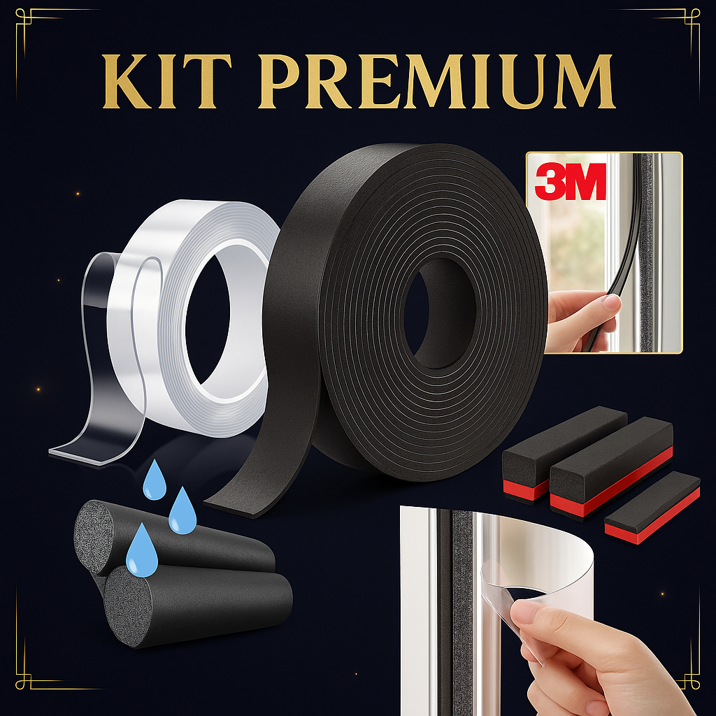 KIT BLINDAGEM RESIDENCIAL — Chega de Poeira, Ruído e Infiltração ✔️ Bloqueia poeira e ruídos. ✔️ Acaba com infiltrações e vãos. ✔️ Instalação fácil sem precisar furar. ✔️ Economia em manutenção da casa. ✔️ Resultado imediato.